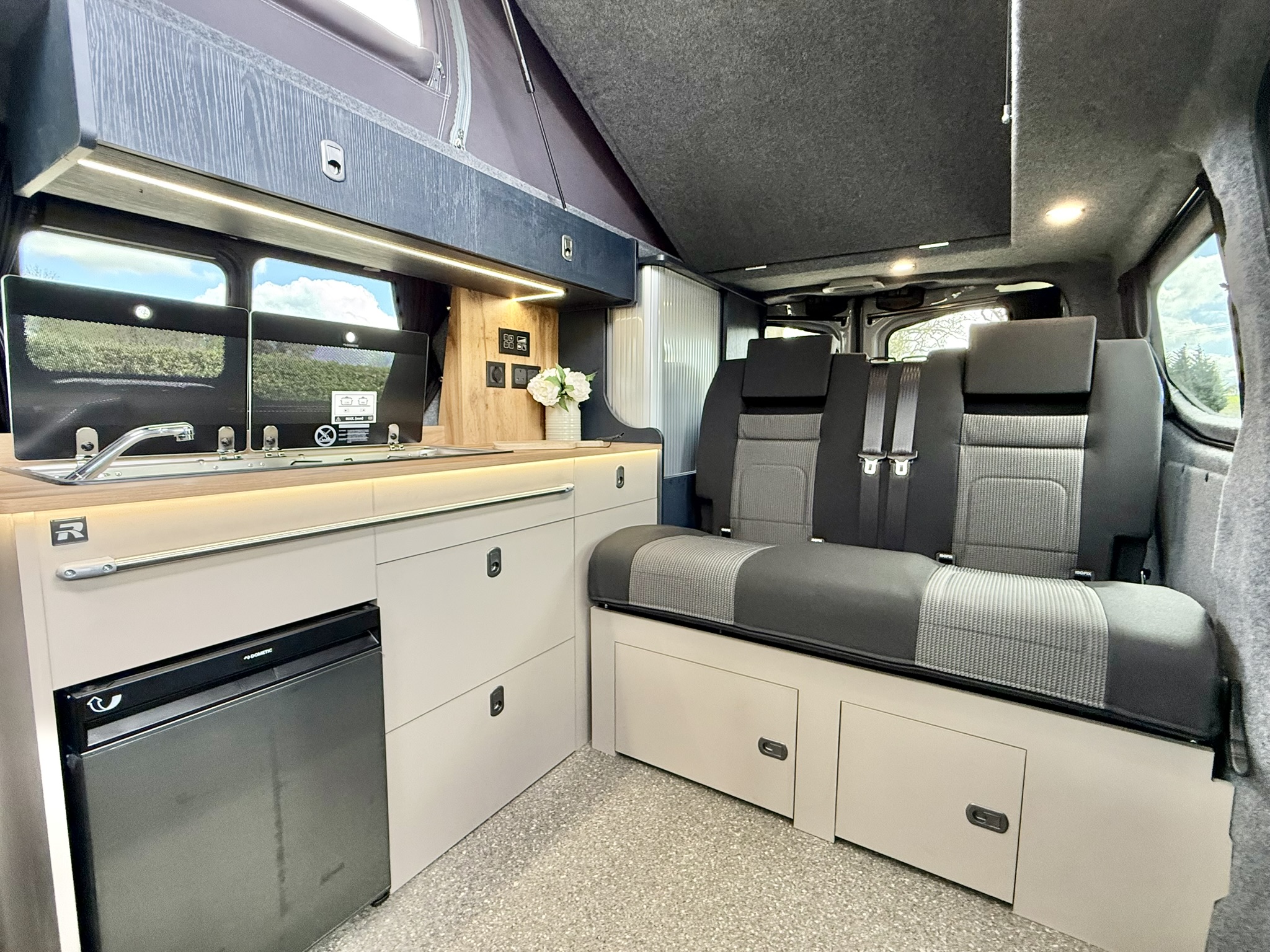 Whether you choose the option of a ready to drive away Redline camper from our forecourt, a built to order campervan, or opt to convert your own VW Transporter T6/T6.1/VW T7 or Ford Transit Custom van, our team are on hand to guide you through the design process, making sure you get the conversion that’s perfect for you.