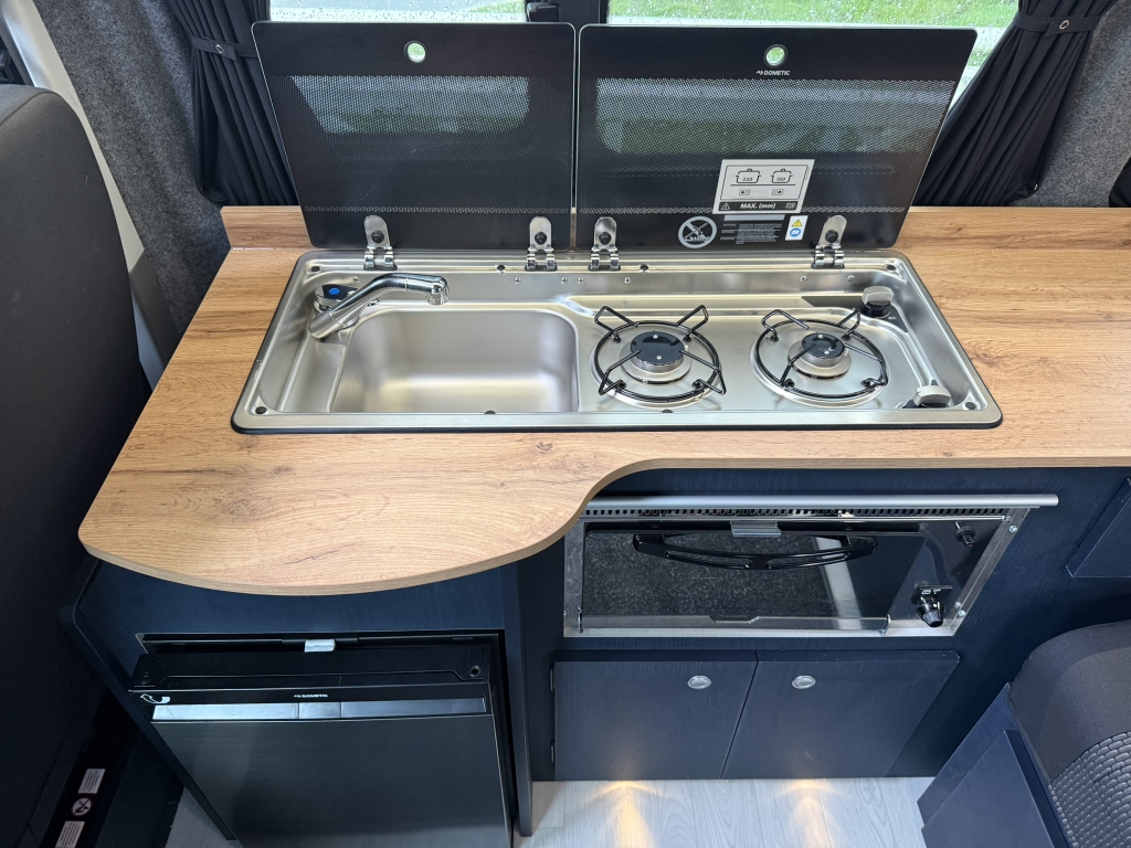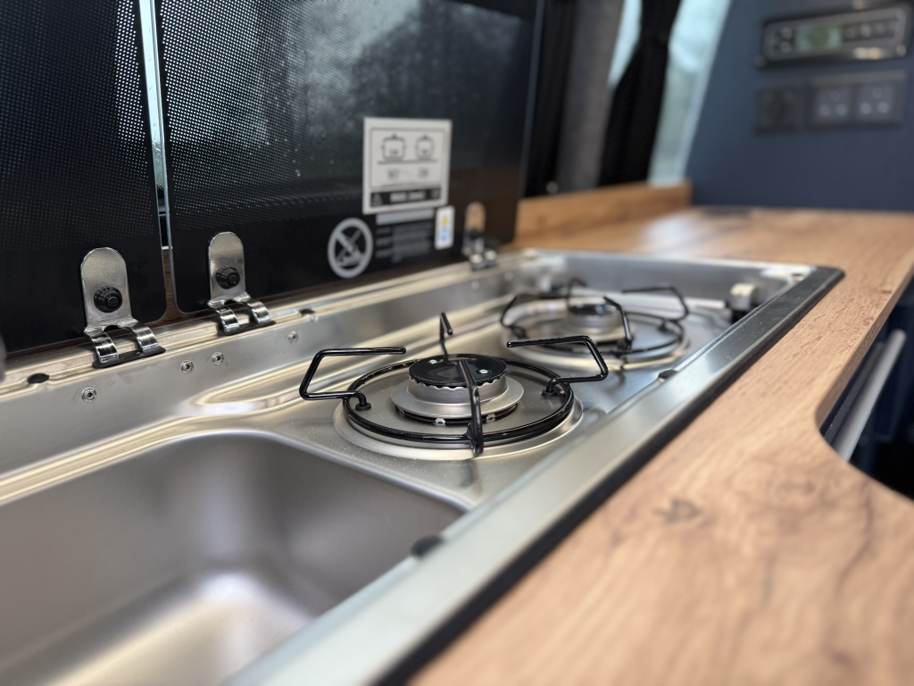 - Dometic two-burner gas hob and sink