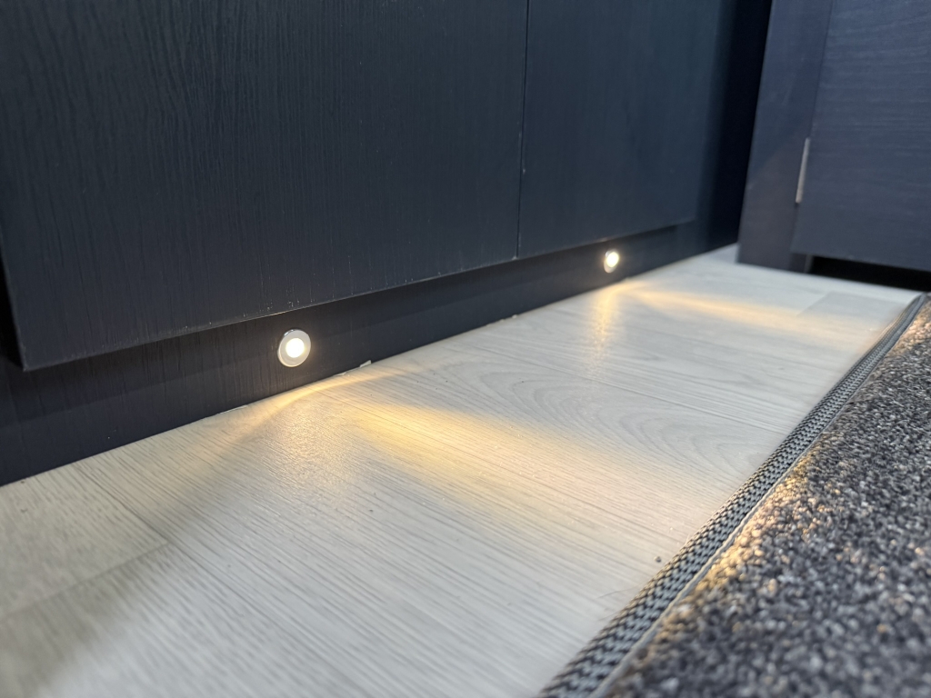 - Enhanced colour LED lighting with one-touch dimmable LED downlights
